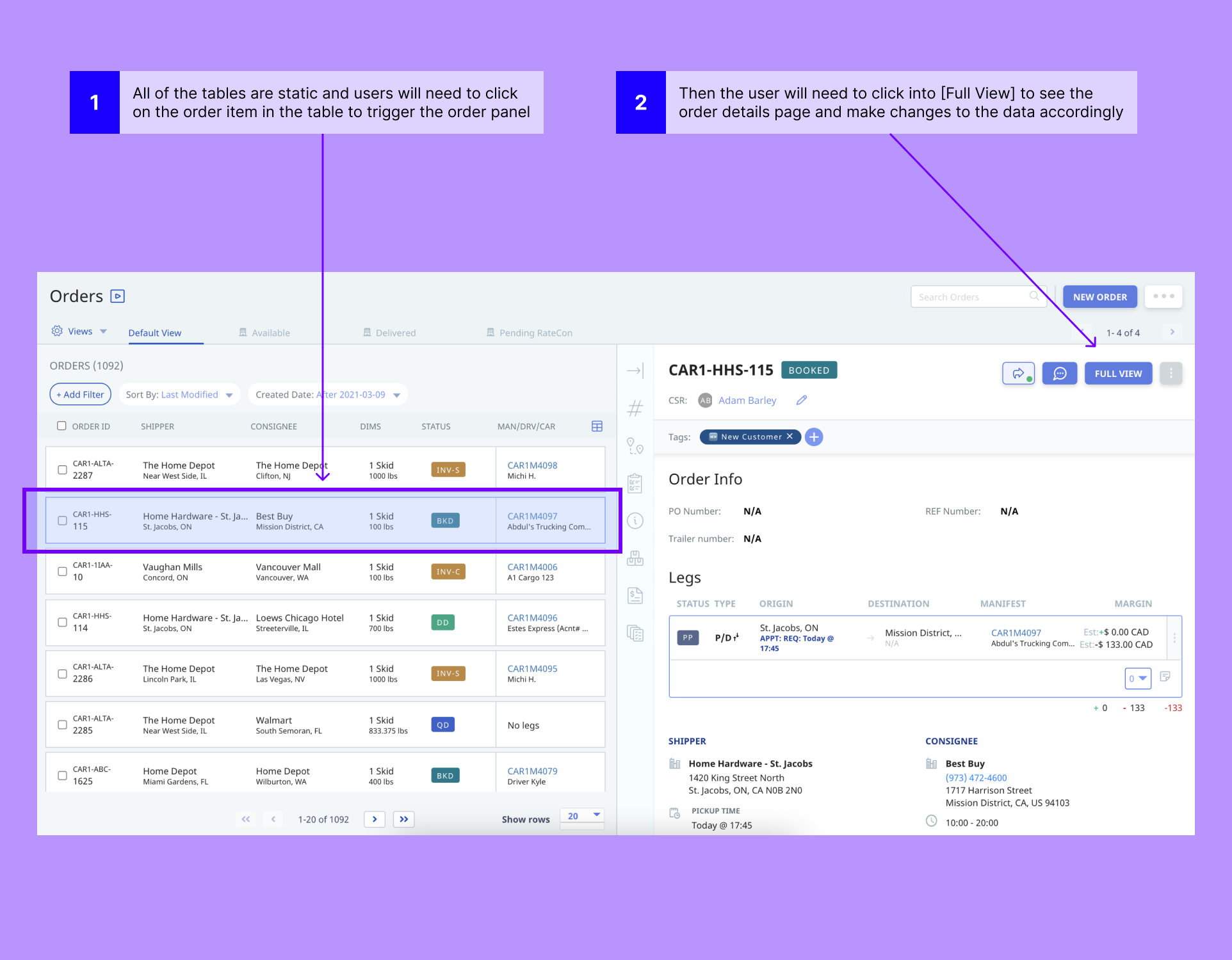 Re‑imagining a transportation management system to make freight operations more flexible, navigable, and editable in context for shippers, brokers, and carriers.